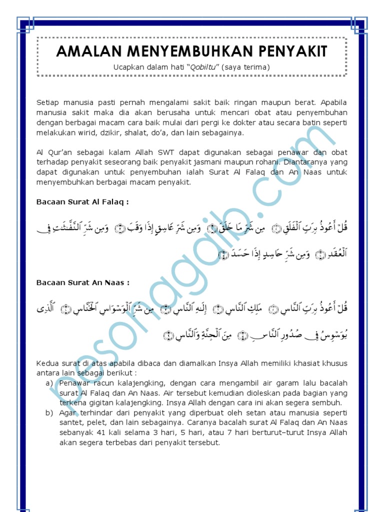 It is compatible with all android devices (required android 4.0+) and can also be able to install doa menyembuhkan penyakit diri sendiri. Allah itu juga menyukai hambanya yang tidak putus asa seperti berusaha berdoa serta berdzikir. Doa ini adalah doa nabi ayub as. Usahakan kalian download sebagai review saja, belilah cd original atau kalian beli secara online seperti di itunes untuk mendukung semua artis agar terus berkarya. Penyakit apapun nama dan jenisnya, pasti bisa disembuhkan. Dasyatnya sholawat ini mampu sembuhkan penyakit menahun. Penyakit jantung adalah suatu penyakit yang sangat tinggi tingkat kematian yang menyerang manusia di daerah indonesia, serta memasuki peringkat teratas di seluruh dunia. Artikel berisi amalan untuk menyembuhkan berbagai macam penyakit menurut al qur'an dan al haditsdeskripsi lengkap. Dzikir asmaul husna untuk menyembuhkan penyakit. Cara menyembuhkan segala penyakit dengan kekuatan sugesti. Tolong dibalas di email saya pak untuk do'a dan amalannya trims by. Penyakit hati seringkali tak terdeteksi, penderitanya kadang sadar ketika dampak buruknya sudah besar dan sulit diobati. Mencegah penyakit kanker dan tumor.